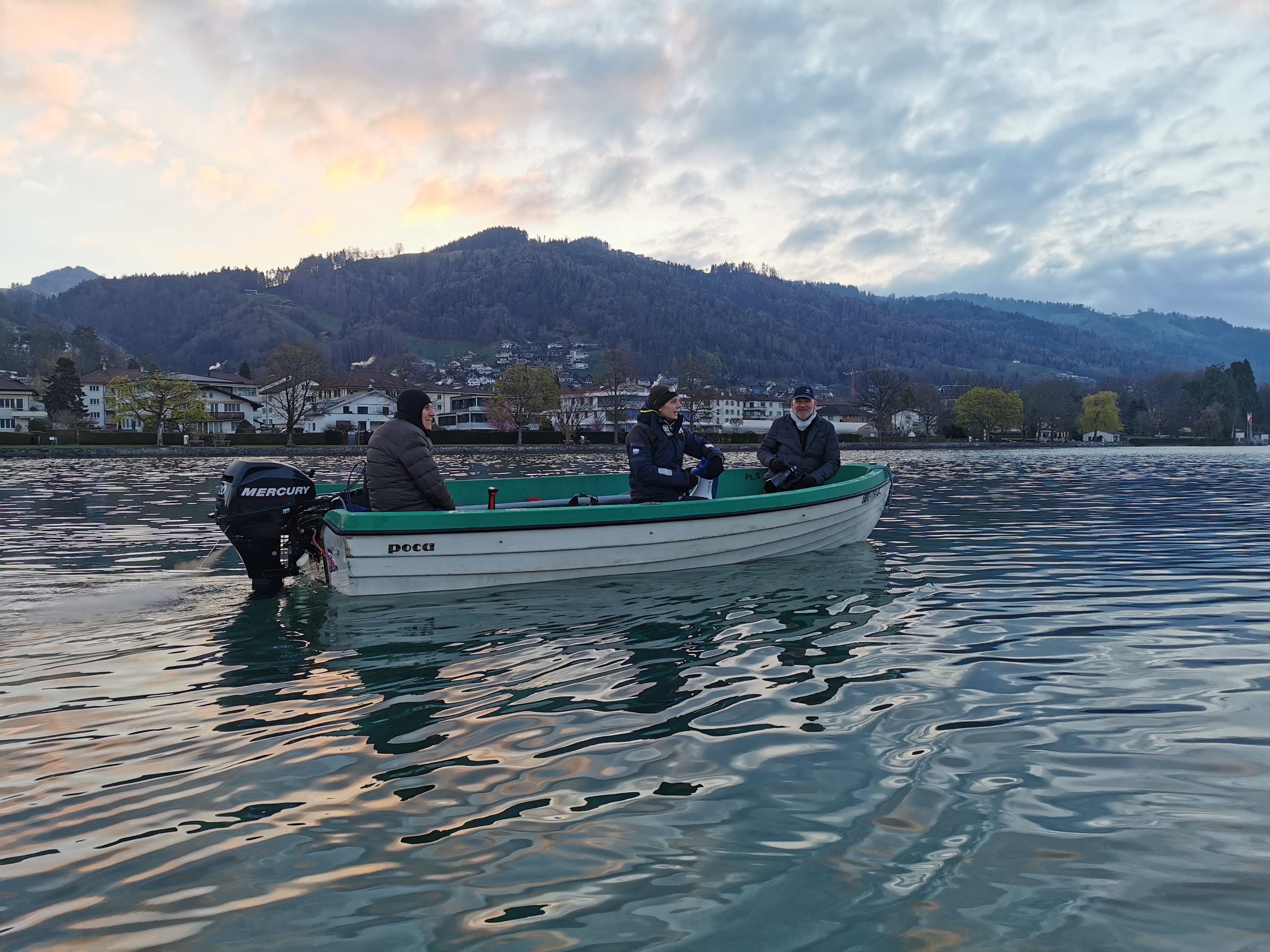 Sarah begleitet uns im Motorboot, das von Ehren-MemberShip Ruedi geführt wird und auch einen Platz für unseren Fotografen und Drohnen-Piloten Romel Janeski bietet.