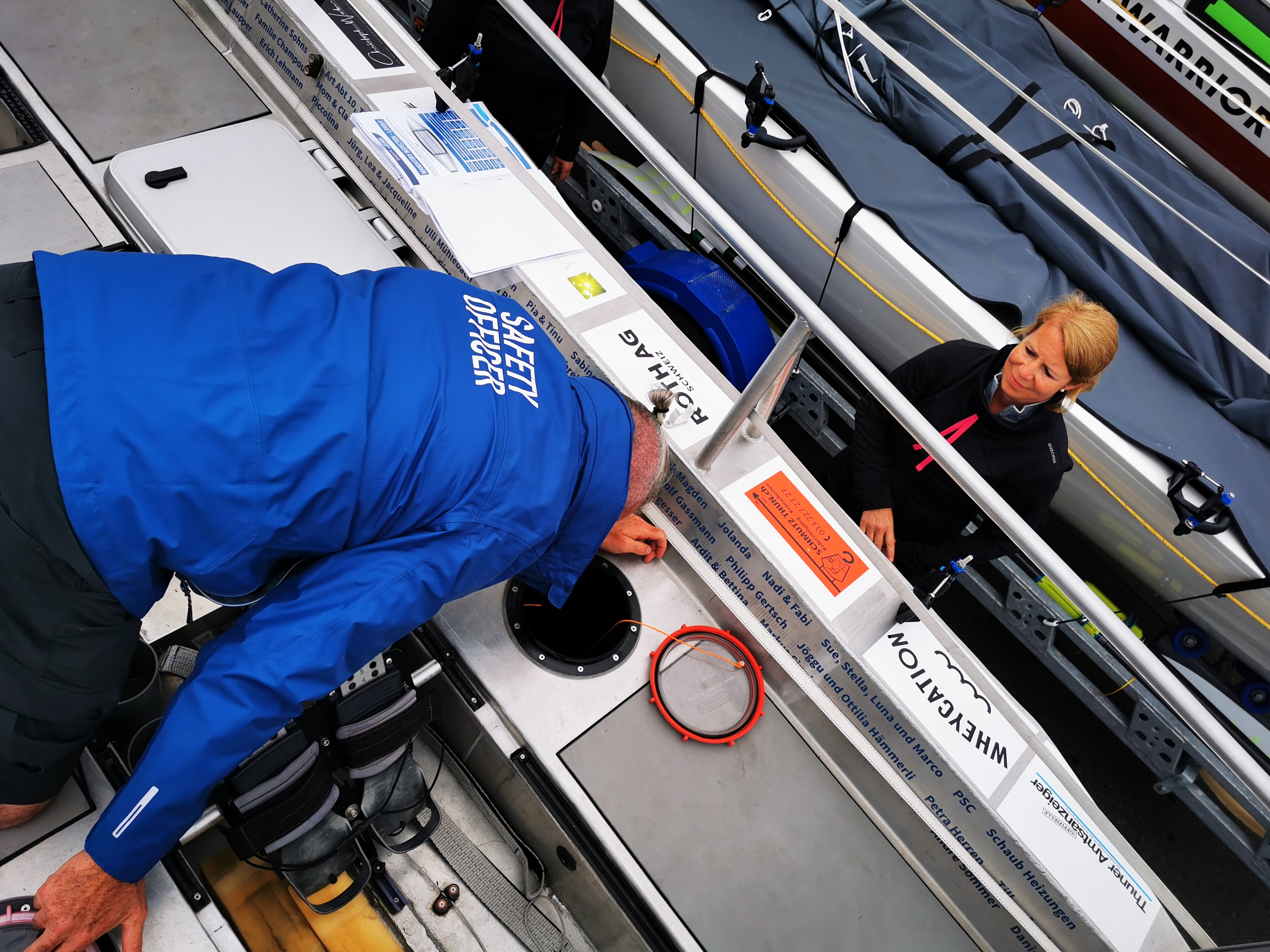 Die rund zweistündige Inspektionsvorbereitung lief wie am Schnürchen und so waren wir pünktlich um 10:00 bereit, den Safety Officer Fraser zu empfangen. Es hat sich gelohnt etwas Zeit ins "mise en place" zu investieren, denn nach einer guten Stunde hatte Fraser das ganze Equipment und das Boot bis in die letzte Ecke geprüft.
