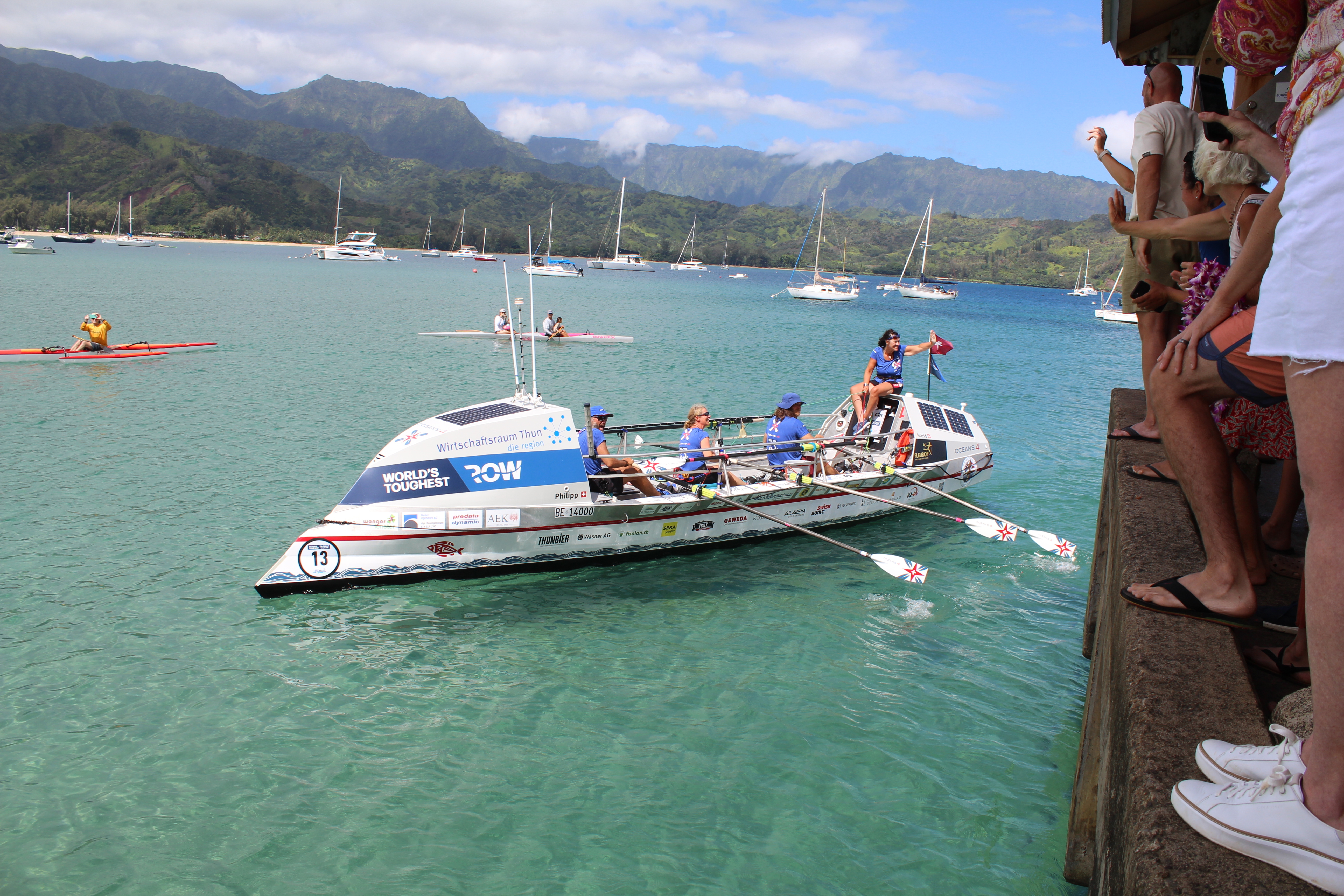 Und wenn wir schon mal da sind, gönnten wir uns natürlich ein paar schöne Tage auf einer zauberhaften Insel, durften wunderbare Menschen kennen lernen, genossen grenzenlose Gastfreundschaft, Anerkennung und zu Land, zu Luft und zu Wasser eine einzigartige, fast surreale Inselwelt. Wir durften mit den Kauai Schweizern am Strand 1. August feiern, den Aloha-Spirit erleben, zahlreiche Frässpäckli-Ansichtskarten schreiben, mit den noch anwesenden Ruderern Erlebnisse austauschen und natürlich noch drei weitere Teams nach Ihrer Ankunft in die Arme schliessen.