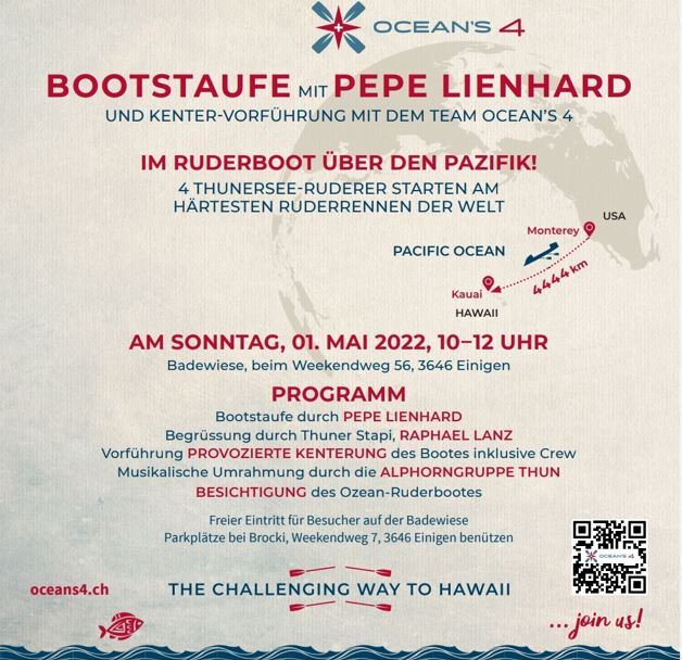 100 geladene Gäste, der Thuner Stadtpräsident und hoffentlich zahlreiche Besucher werden dabei sein, wenn es heisst: Traditions, Emotions & Action am kommenden Sonntag, 01. Mai 2022 um 10:00 in Einigen! Pepe Lienhard, DER Swiss Lady-Vater erweist uns und unserem Boot die Ehre und tauft die Little SWISS LADY feierlich in ihrem Heimathafen in Einigen!
