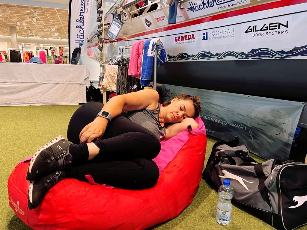 Die Stimmung in der Nacht war einzigartig. SeePerle Rahel hat die Nachtschichten der vierten Person abgedeckt und mit ihren Regatta-Beinen die Team-Leistung massiv erhöht. Livio, unser Security-Mann leistete uns während der gesamten Nacht Gesellschaft und schon um 06:00 trafen die ersten Mitarbeitenden ein. Zu diesem Zeitpunkt hatten wir alle schon 8 Ruderstunden in den Beinen und durften uns für die Tagstunden auf Abwechslung durch Besucher freuen.