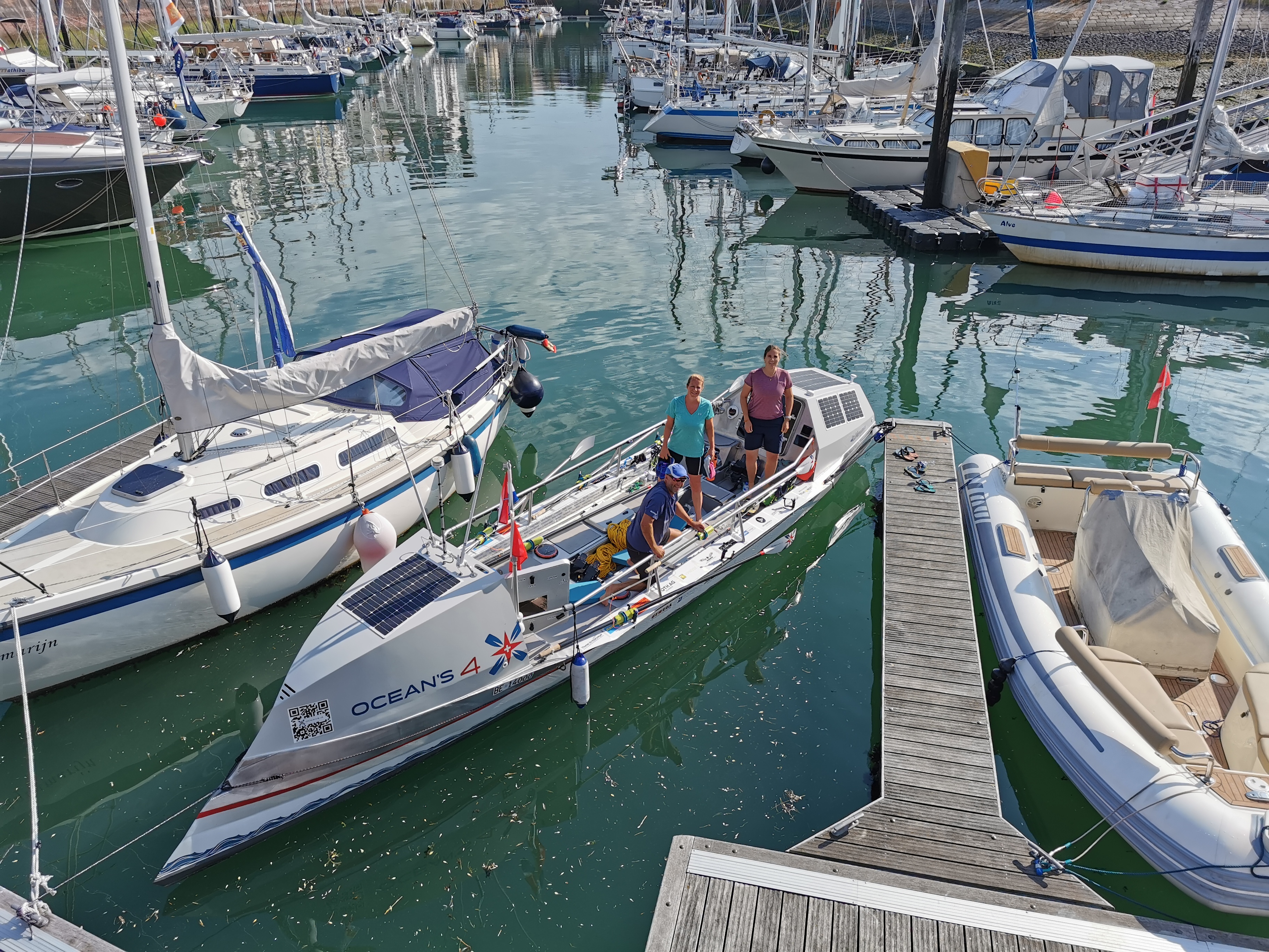 In den folgenden 3 Nächten und Tagen erleben sie ein unvergessliches Abenteuer auf der Nordsee vor Hollands Küstengebieten. «Unser einwöchiger obligatorischer Kurs in England hat uns wohl etwas über die wichtigsten Signalisationen, dem Verhalten in Seefahrtswegen und Gezeitenberechnungen gelehrt, dennoch hatten wir Herzklopfen, im Wissen darum, dass wir nun auf uns gestellt sind». Das Team hat sich im Schichtbetrieb organisiert. Jedes Crewmitglied rudert 2 Std., navigiert und steuert 1 Std., bevor noch 60 Min. bleiben, um sich hinzulegen, etwas zu essen und sich zu pflegen. Diesen Rhythmus haben die OCEAN’S 4 für die gesamte 72 Stunden-Challenge eingehalten. «Wir haben maximal profitiert von der Intensität und den Aufgaben, die uns diese Route gestellt hat» sind sich die Vier einig. Den Wieder-Eintritt vom offenen Meer zurück ins Seensystem vor Vlissingen schafften sie wegen der starken Gegenströmung der Ebbe nur durch den Einsatz eines zusätzlichen dritten Ruderers und unter stundenlanger Höchstleistung. Der Schiffsverkehr in diesen Regionen läuft Tag und Nacht auf Hochtouren. Die Vier waren nonstop gefordert, sämtliche Schiffe um sie herum, per Monitor und von Auge zu detektieren und Kollisionskurse zu verhindern.
