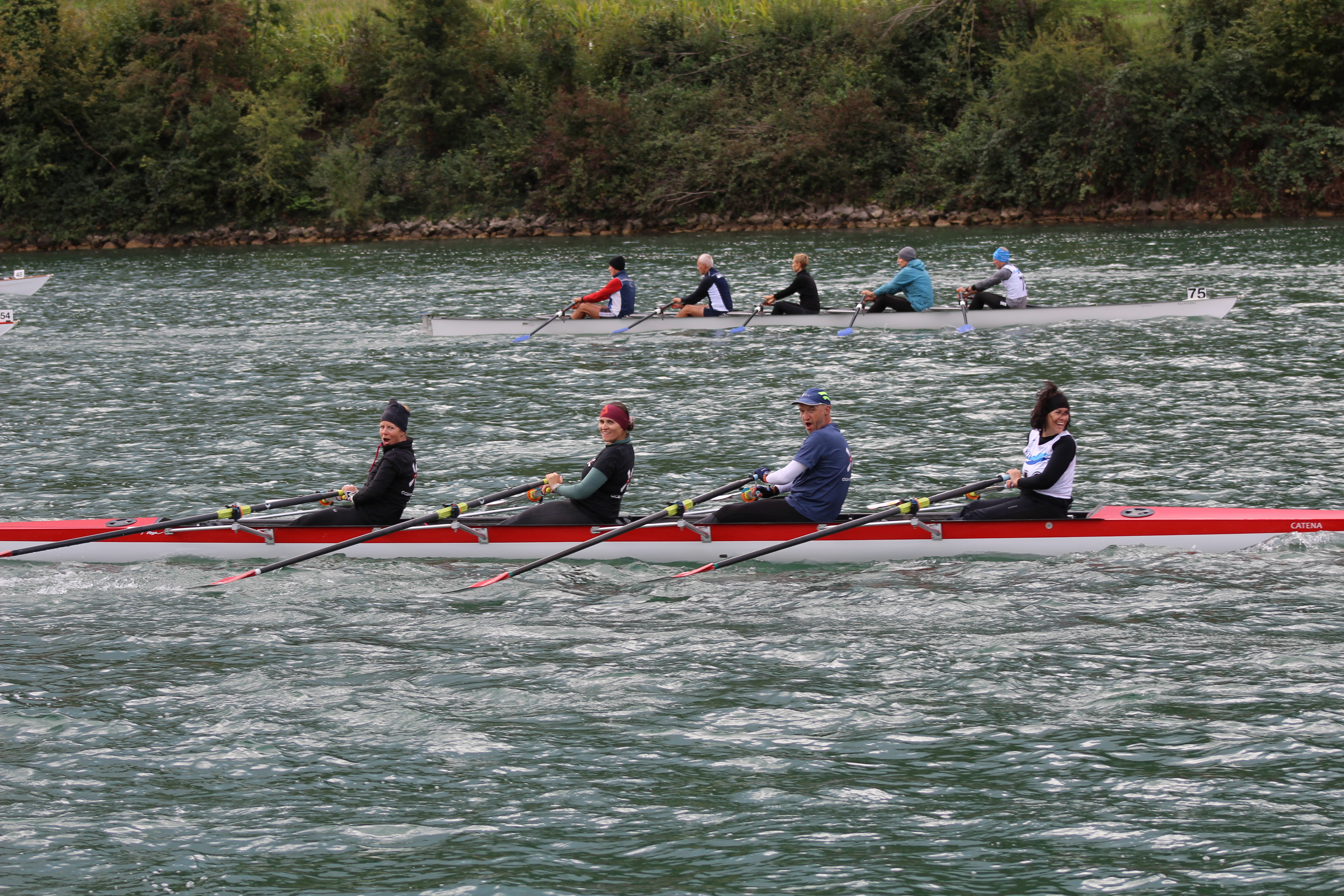 Pünktlich um 09.30 Uhr fiel der Startschuss. Die 92 Boote aus der ganzen Schweiz ruderten flussaufwärts los in Richtung Büren an der Aare, wo sich der Wendepunkt befand. Der kurvenreiche Verlauf der Aare, die die zahlreichen Boote und die kühlen Temperaturen waren eine Challenge welche das OCEAN'S 4 Team mit Bravour und Spass gemeistert hat.