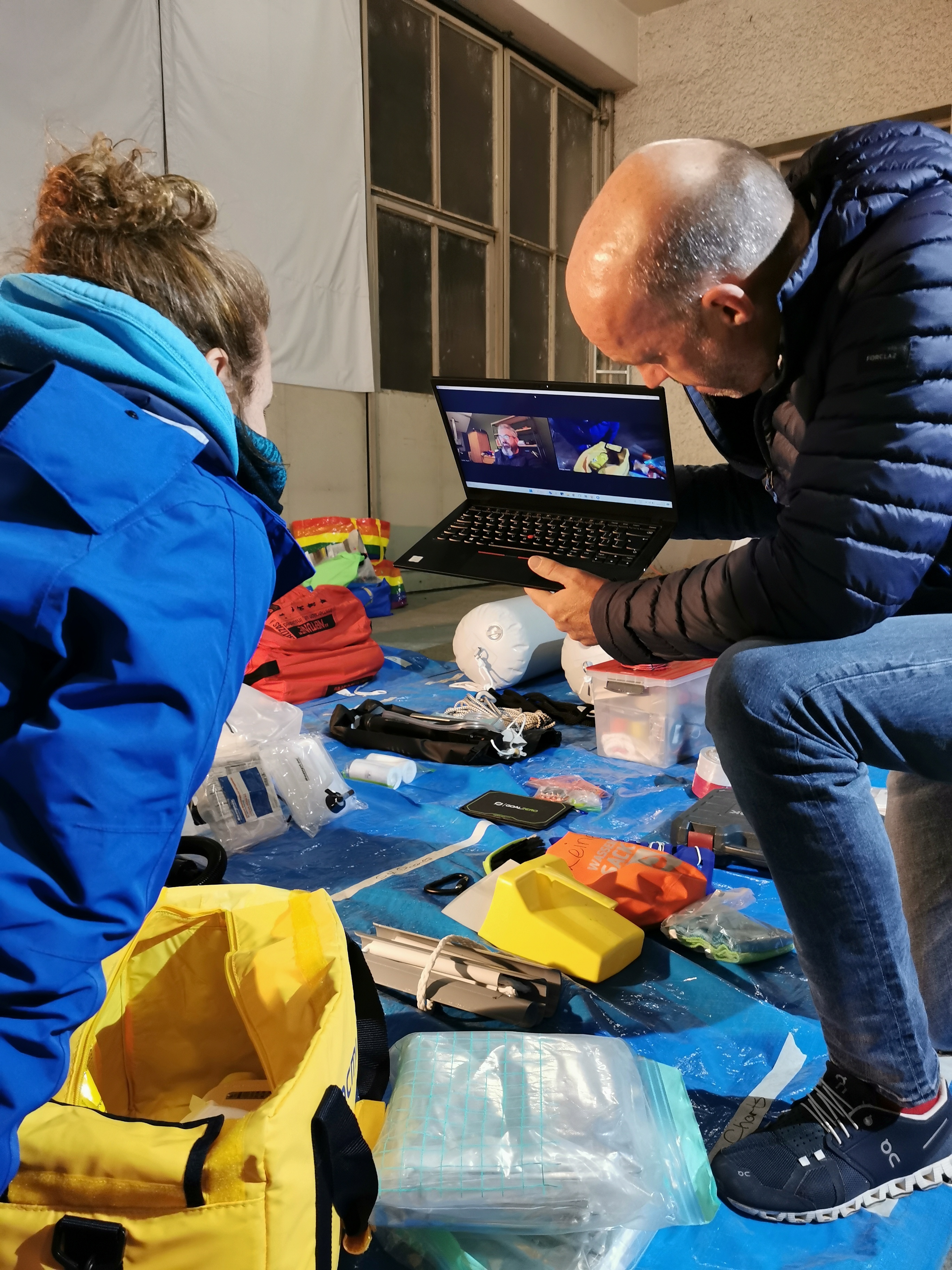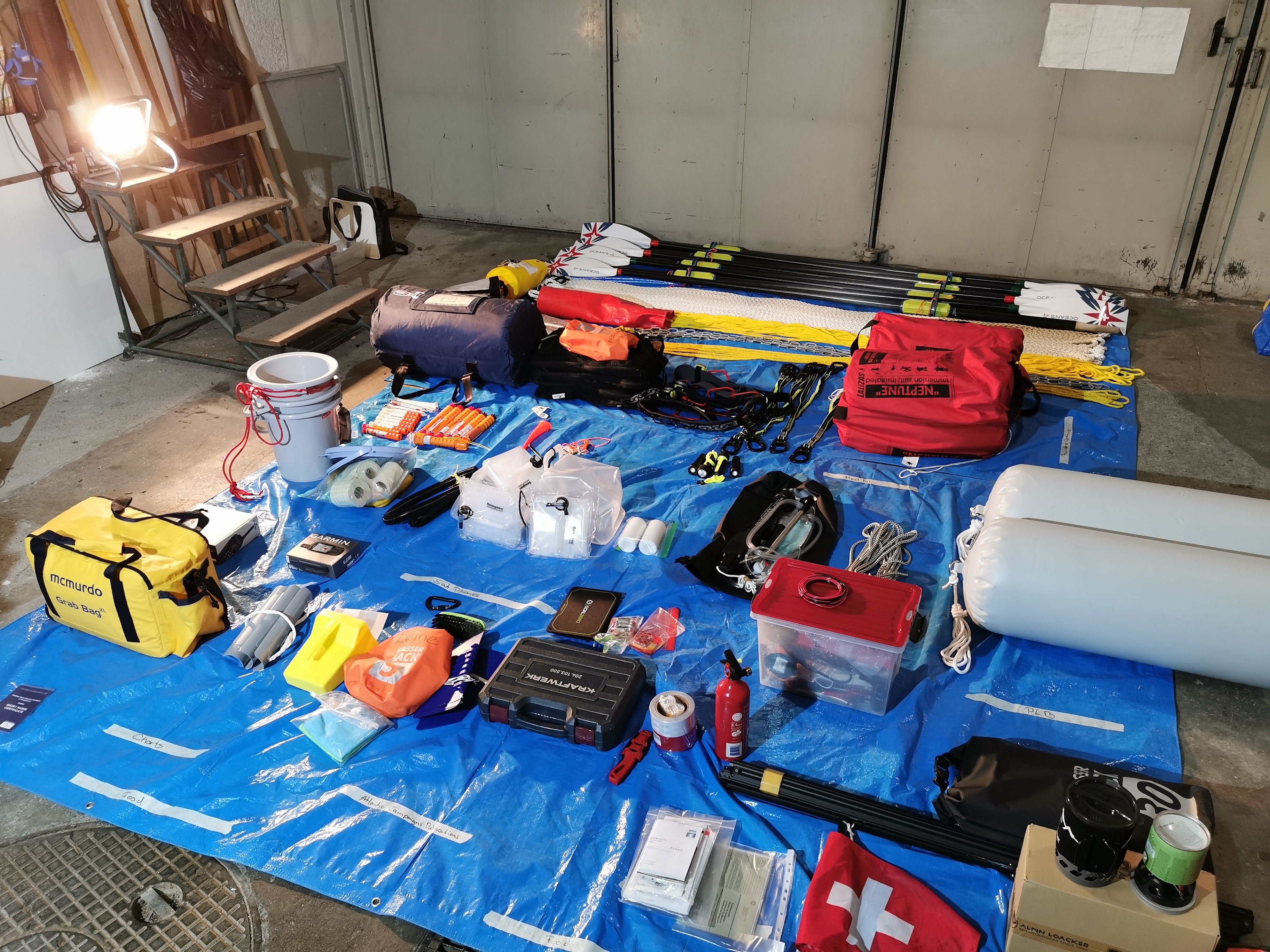 Der zweistündigen Inspektion per Skype durch Fraser, einer der beiden Safety Officers der Atlantic Campaigns, ging die zweistündige Vorbereitung durch Denise voraus. Als Verantwortliche für die Beschaffung des Equipments, hat sie die gesamte Ausrüstung nach einem vorgegebenen Plan ausgelegt.