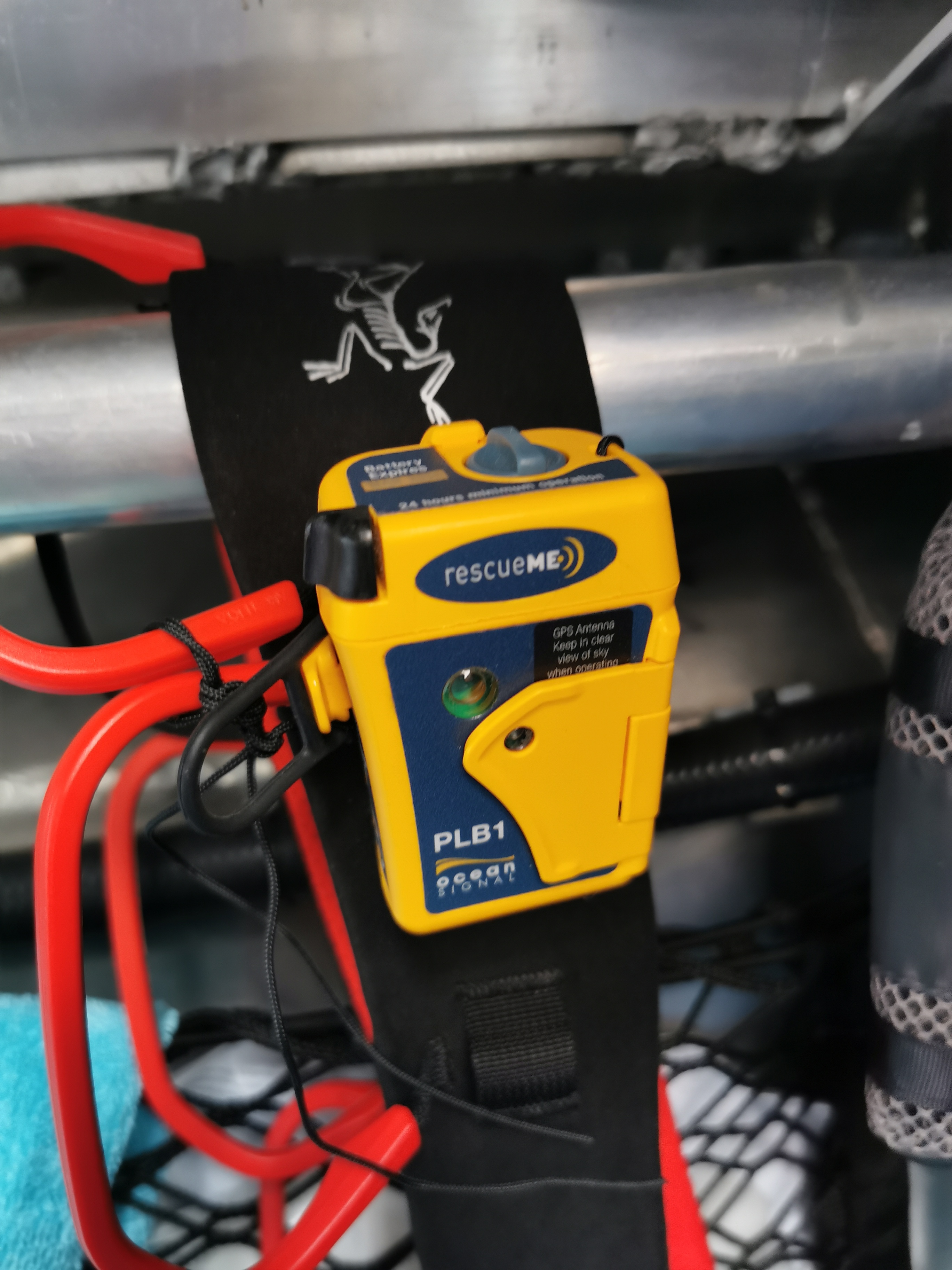 Dazu gehört auch das PLB (personal locator beacon). Das trägt jeder Ruderer jederzeit auf sich, sobald er die Kabine verlässt und sich an Deck aufhält. In einem Fall von Mensch über Bord, wird es durch den Ruderer aktiviert und hilft den Rettungskräften an Land, die im Meer treibende Person zu lokalisieren und nahegelegene Schiffe (Frachschiffe, Tanker oder Militärschiffe) die Position zu übermitteln.