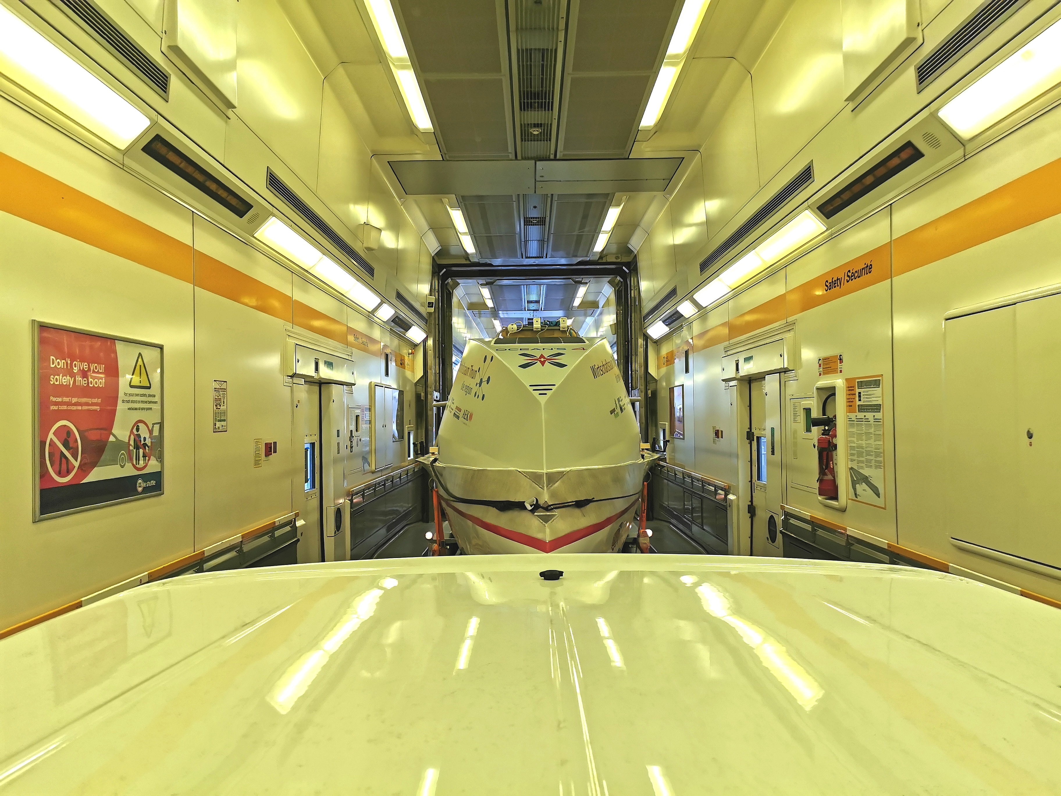 Am Folgetag steuern wir in Calais den Verlad Eurotunnel an, der uns in nur 35 Minuten unter dem Ärmelkanal nach Folkestone, England bringt. Von hier sind es nur noch rund zwei Stunden bis zum Verschiffungs-Unternehmen in Burnham on Crouch. Toni ist ein echter Profi und bewegt das über 16 Meter lange Gespann auch im Linksverkehr souverän und heil ans Ziel.