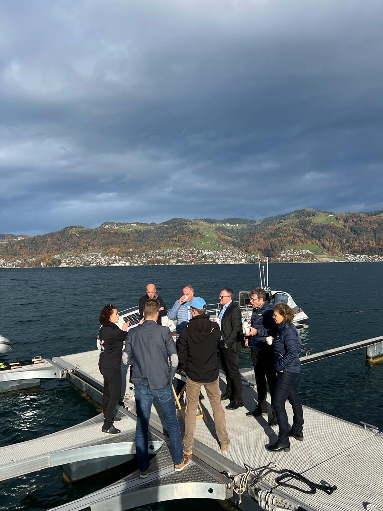 Am Steg der Hächler Bootbau AG durften wir unseren Gästen zahlreiche spannende Fragen beantworten und natürlich den neu dekorierten Bug und unsere Zusammenarbeit feiern.
